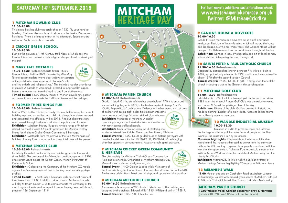 Mitcham Heritage Day is part of Wandle Fortnight 2020 and Heritage Open Days